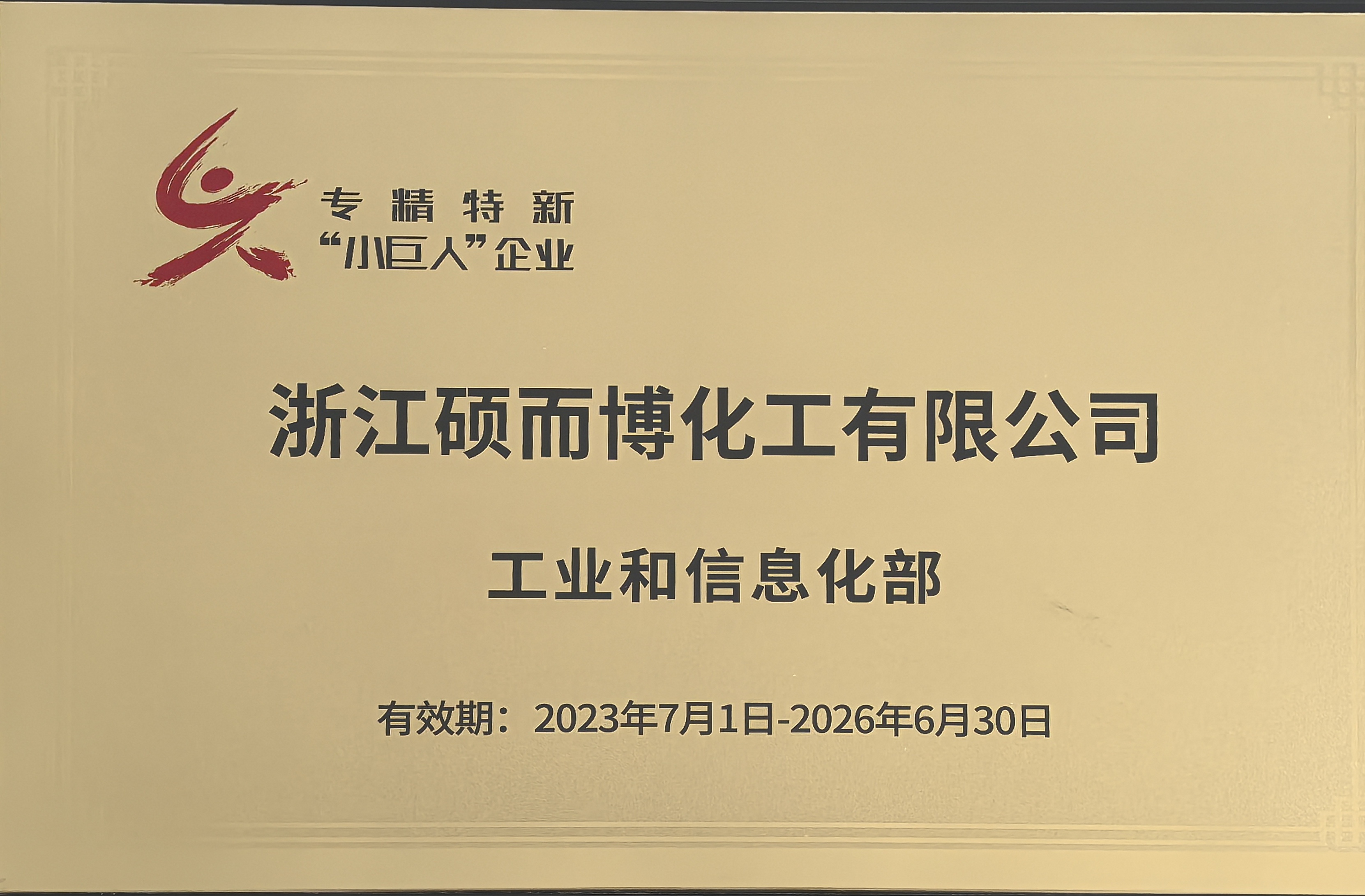 浙江碩而博化工有限公司創建于2007年,公司注冊資本4600萬元,總資產2億元,目前在崗員工120余人。公司廠區占地約40畝,位于浙江省衢州市智造新城產業園巨化廠二北路6號,物流大道南側,近鄰杭金衢高速、杭甬高速,交通十分便利。